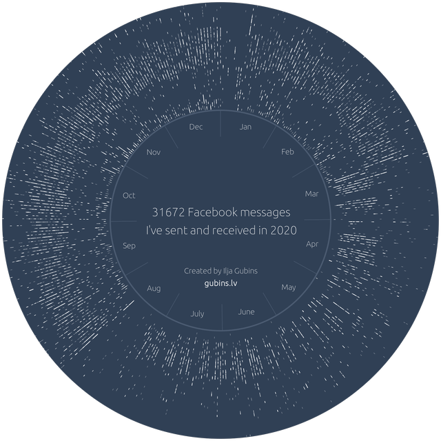 As of now, more than 4 years have passed and it would be interesting to see how my messaging patterns and habbits changed. Unfortunately, back then I was not as careful with my side projects as I am now, and I lost all the code. Moreover, I (happily) haven’t touched Javascript for a few years now, and I am hoping to continue with that. For my 2021 spring vacation, I’ve set a goal of redoing the visualization in Python, with new data and document everything properly for a blog post, and hopefully finding something new along the way. If you are reading this on my website, the experiment is a success!